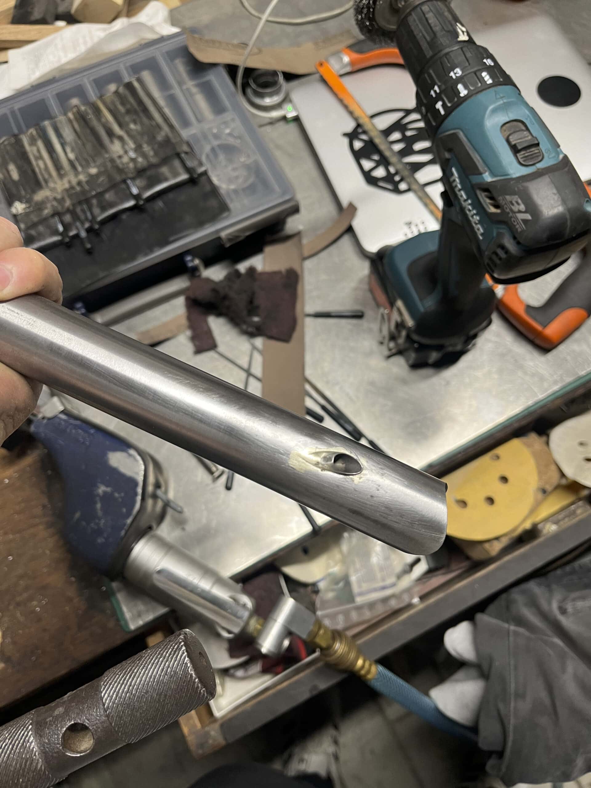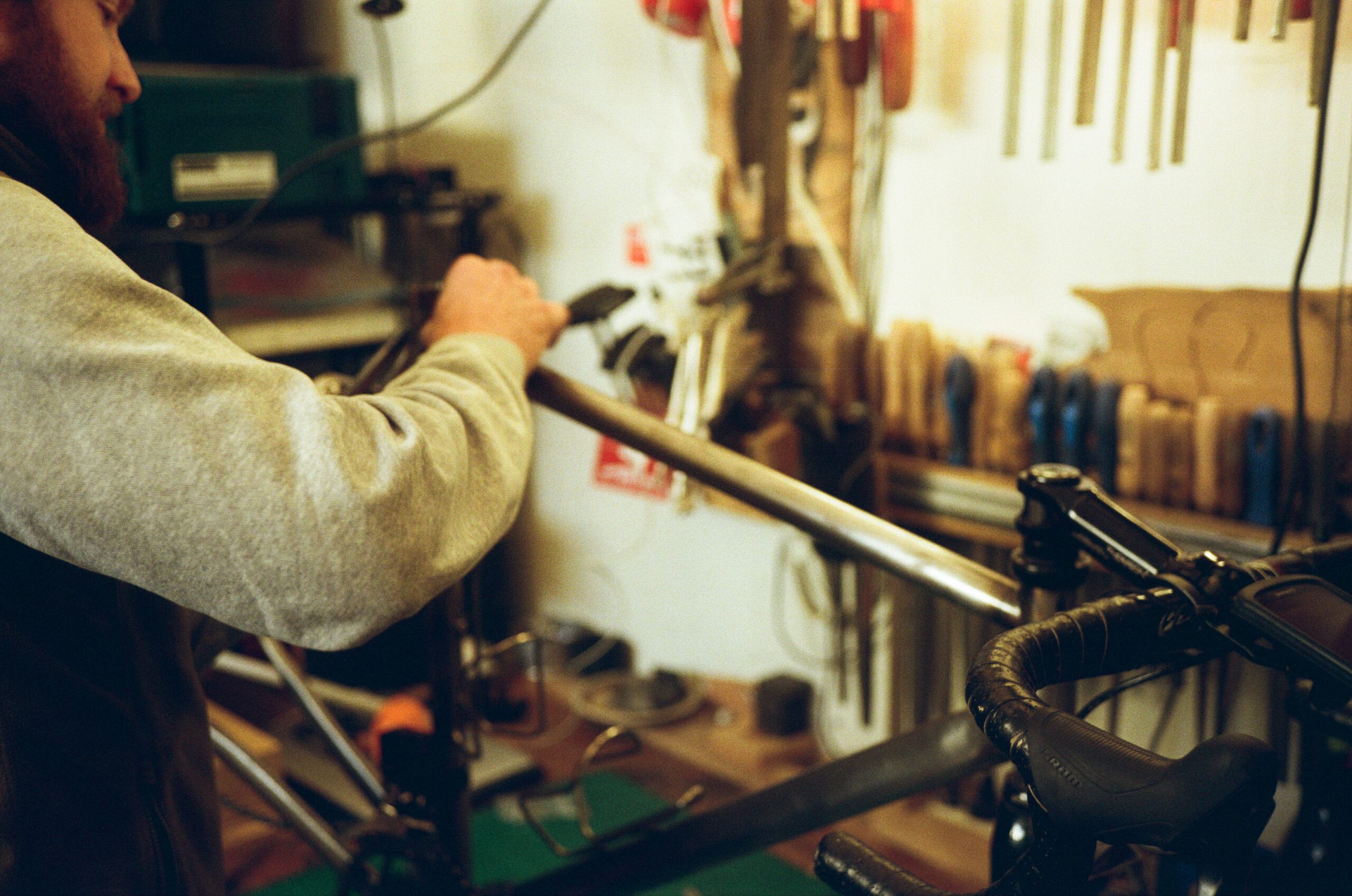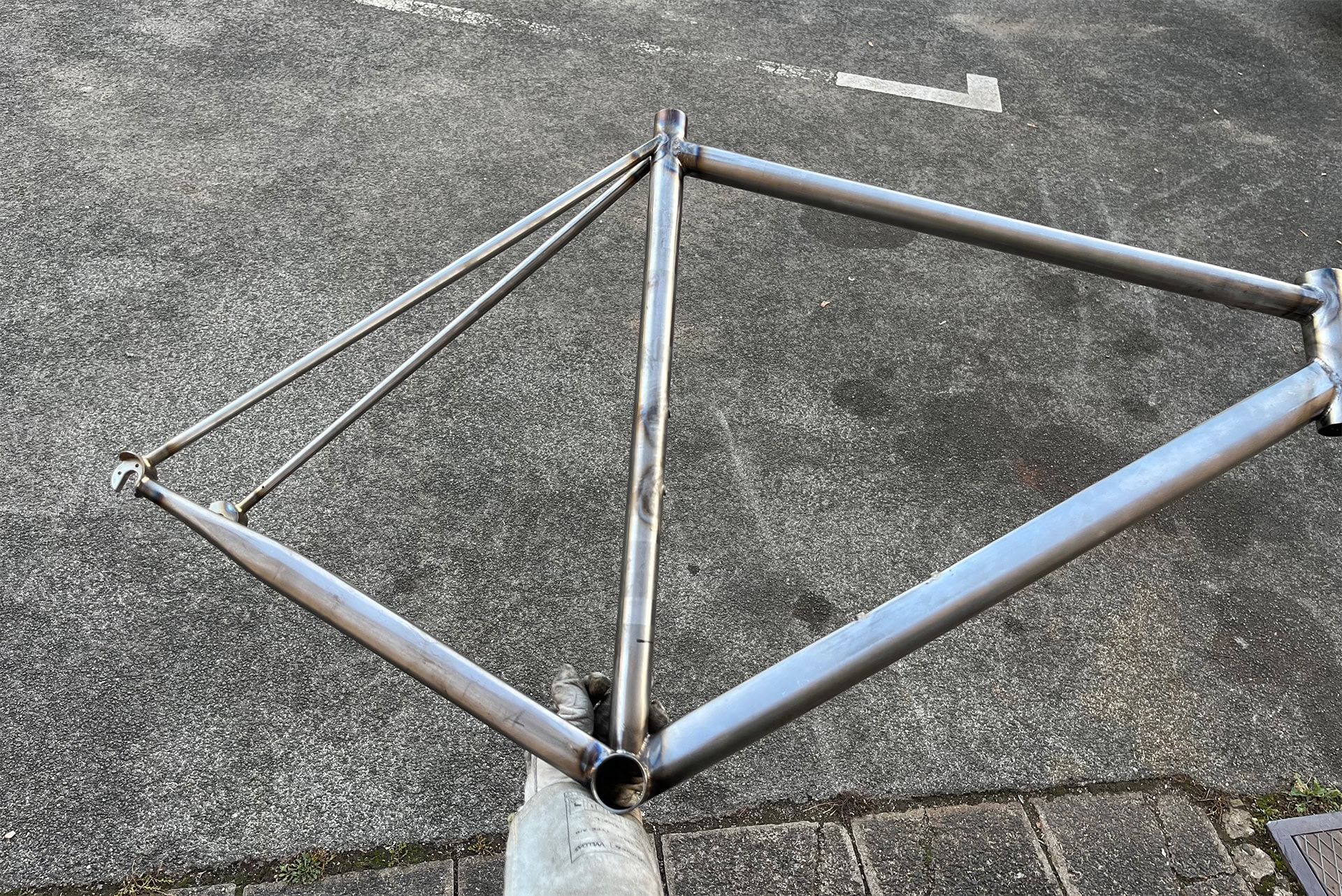 The welds is exposed by choice. Each joint is finished by hand to the point where covering it with paint felt like the wrong move. A lacquer will come eventually — when I’m ready to let this bike leave the workshop for a week. Until then, it stays raw.